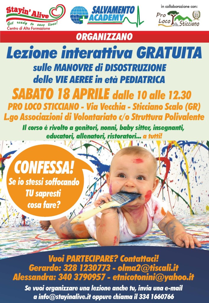 Lezione interattiva GRATUITA sulle manovre di disostruzione  delle vie aeree in età pediatrica.18 aprile-2