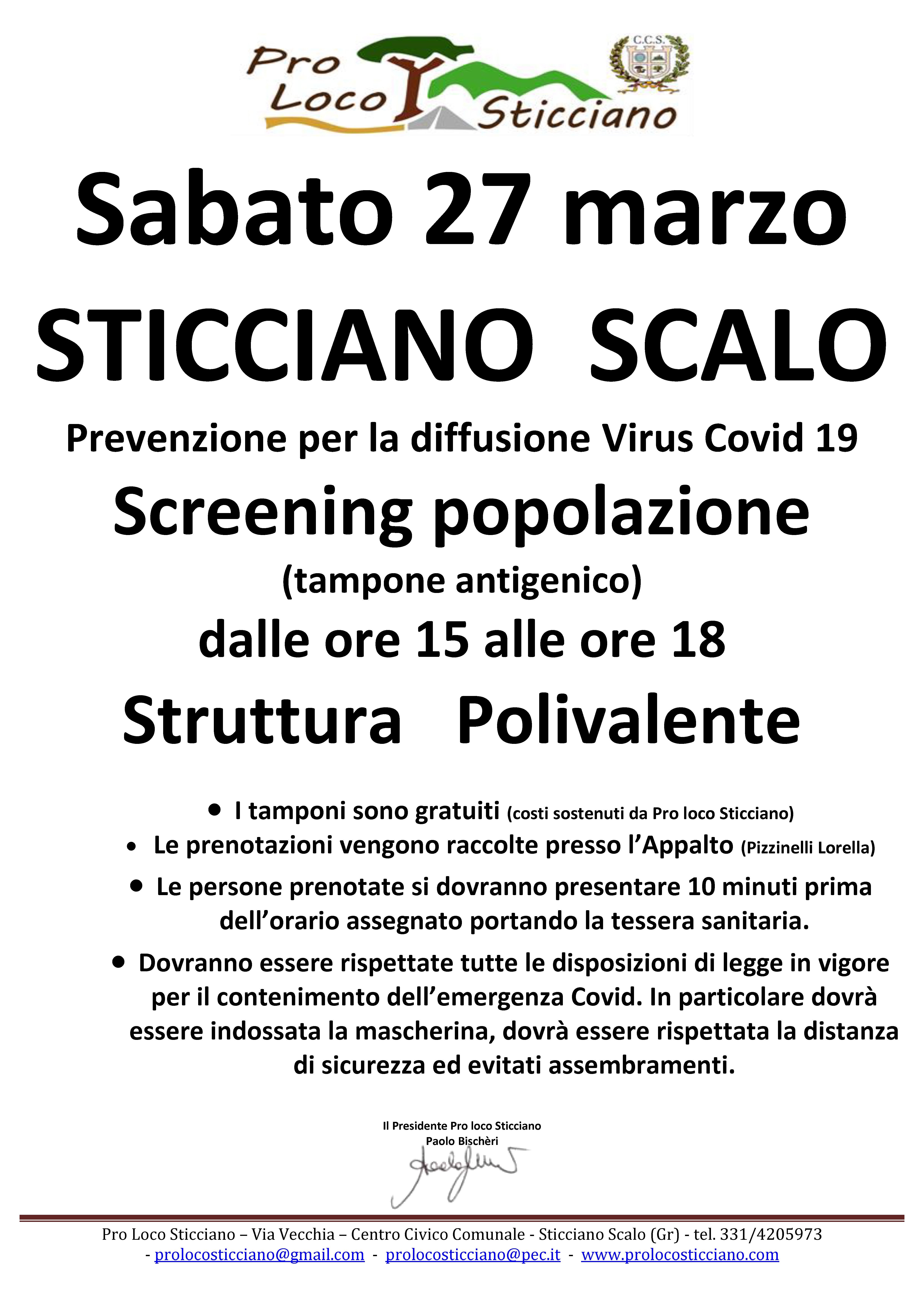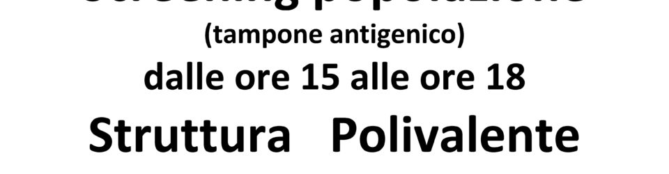 👉Sabato 27 marzo – Screening popolazione dalle ore 15 alle ore 18 Struttura Polivalente