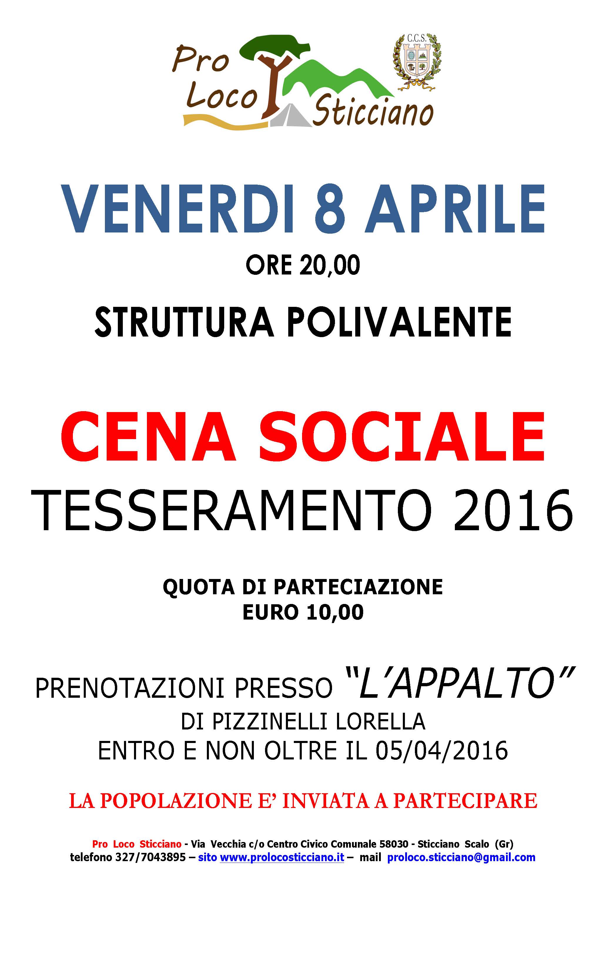 MANIFESTO CENA SOCIALE 2016