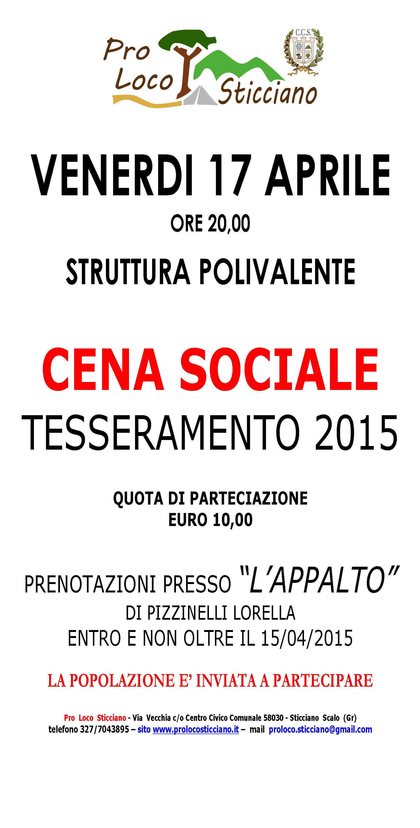 VENERDI 17 APRILE ORE 20,00 STRUTTURA POLIVALENTEMANIFESTO CENA SOCIALE 2015