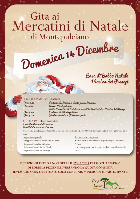 ISCRIZIONII ENTRO E NON OLTRE IL 07/12/2014 PRESSO “L’APPALTO” DI LORELLA PIZZINELLI VERSANDO LA QUOTA COMPLETA